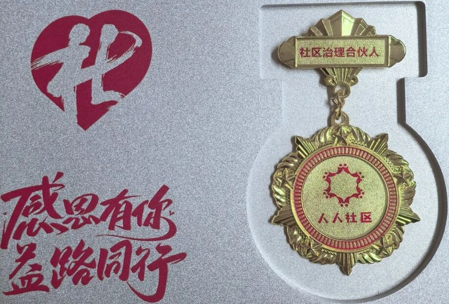 致敬"四支力量",全市11家单位的负责人上台接受了:"感恩有你 益路同行一一社区治理合伙人 人人社区"徽章。北极星口腔医院党支部书记袁常青上台接受了这一荣耀。